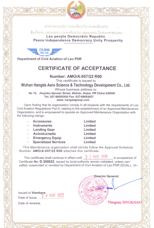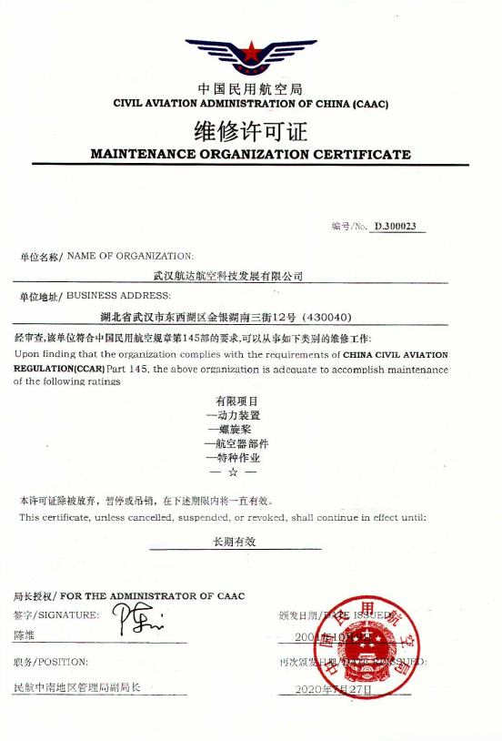 In February 2010, the company successfully passed the CAAC audit of landing gear.